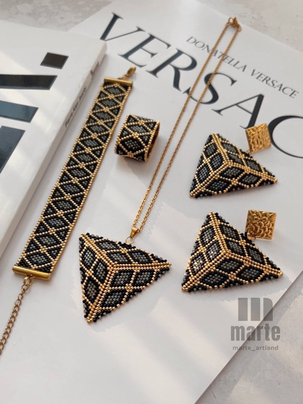 الهام گرفته از زنان اصیل و باوقاری که درخشششان آرام اما نافذ است. طرح هندسی و منجوق های طلایی و مشکی، تضادی خیره کننده می سازند که هر نگاهی را به خود جذب می کند. زلیخا نماد شکوه کلاسیک در دنیای مدرن است.