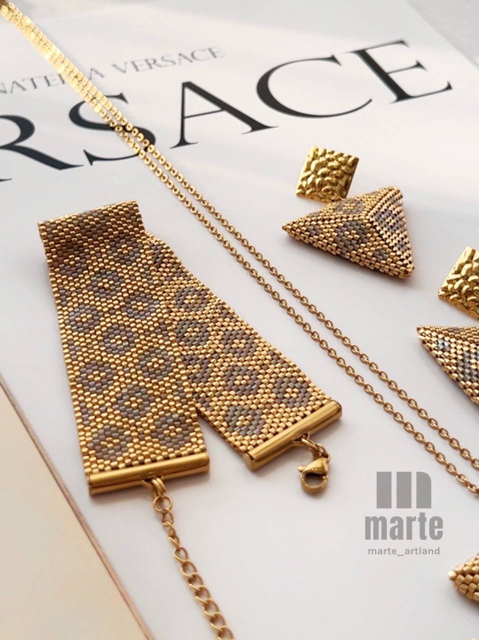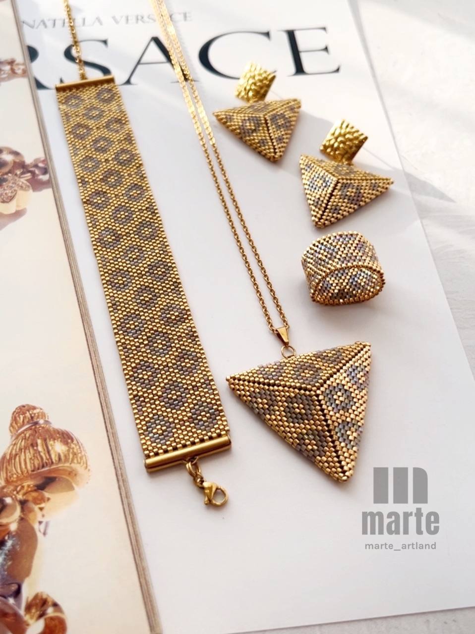 - بافته شده با منجوق میوکی اصل ژاپنی.