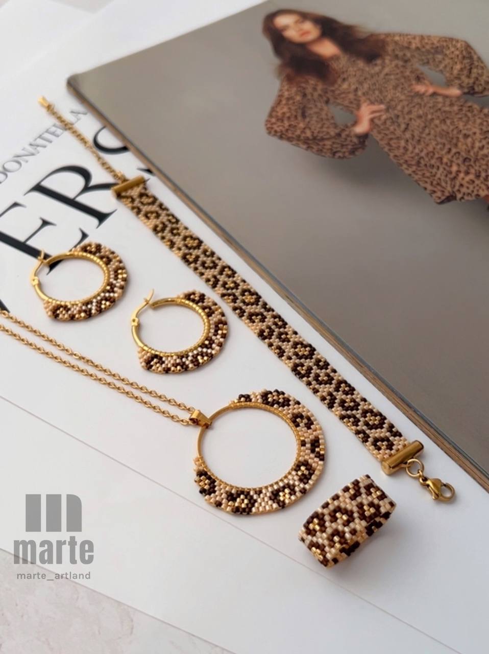 یک انتخاب هوشمندانه برای دوستداران طرحهای خاص و حیوانات است. این ست کامل شامل دستبند، گردنبند، گوشواره و انگشتر پلنگی است که با ترکیب رنگهای گرم و خنثی نباتی (کرم/بژ) و قهوهای و طلایی، ظاهری الهام گرفته از طبیعت و در عین حال مدرن به شما میبخشد. شما میتوانید این مجموعه را به صورت ست کامل زیورآلات سفارش دهید یا برای تکمیل استایل خود، آیتمهای مورد نظر را به صورت تک خریداری کنید.