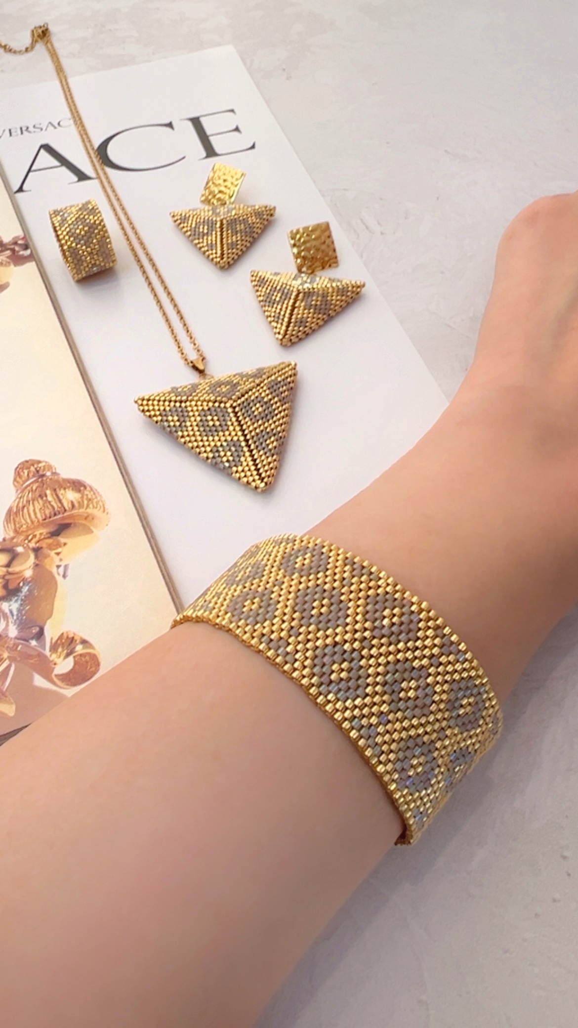 - بافته شده با منجوق میوکی اصل ژاپنی.